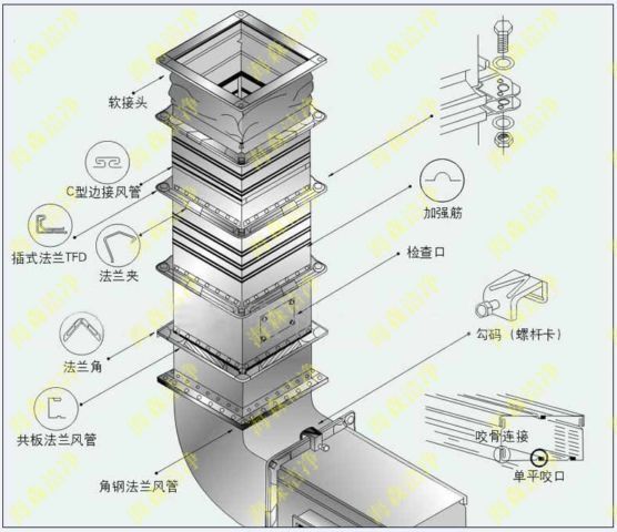 3、鍍鋅板風(fēng)管支、吊架宜按國(guó)標(biāo)圖集與規(guī)范選用強(qiáng)度和剛度相適應(yīng)的形式和規(guī)格。對(duì)于直徑或邊長(zhǎng)大于2500mm 的超寬、超重等特殊鍍鋅板風(fēng)管的支、吊架應(yīng)按設(shè)計(jì)規(guī)定。